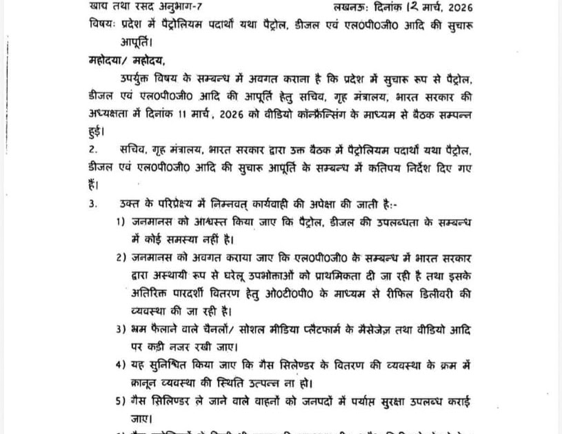 उत्तर प्रदेश – CS-SP गोयल ने पेट्रोल,डीजल और LPG आदि की सुचारू आपूर्ति हेतु कलेक्टरों को दिशा निर्देश जारी ...