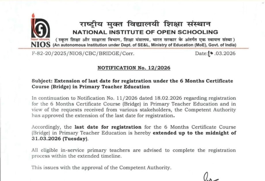 ब्रिज कोर्स के लिए पंजीकरण की अंतिम तिथि में 31 मार्च 2026 मध्यरात्रि तक विस्तार किया गया। – UpdateMarts| PRIMARY KA MASTER | SHIKSHAMITRA | Basic Shiksha News