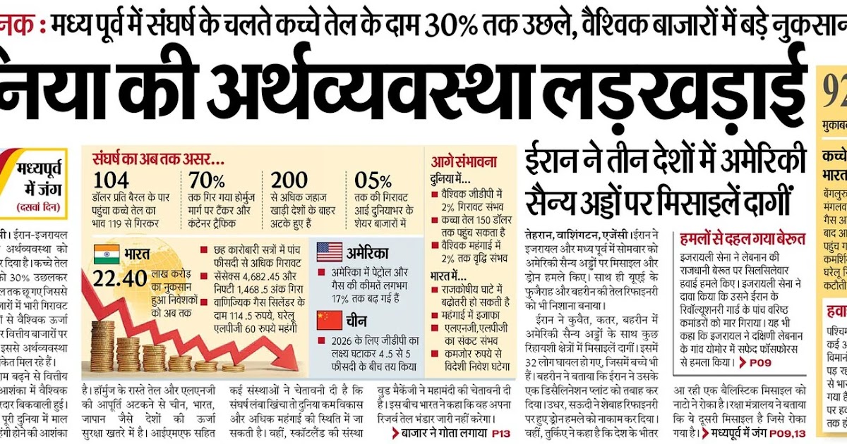 दुनिया की अर्थव्यवस्था लड़खड़ाई: मध्य पूर्व में संघर्ष के चलते कच्चे तेल के दाम 30% तक उछले, वैश्विक बाजारों में बड़े नुकसान के संकेत – UpdateMarts| PRIMARY KA MASTER | SHIKSHAMITRA | Basic Shiksha News