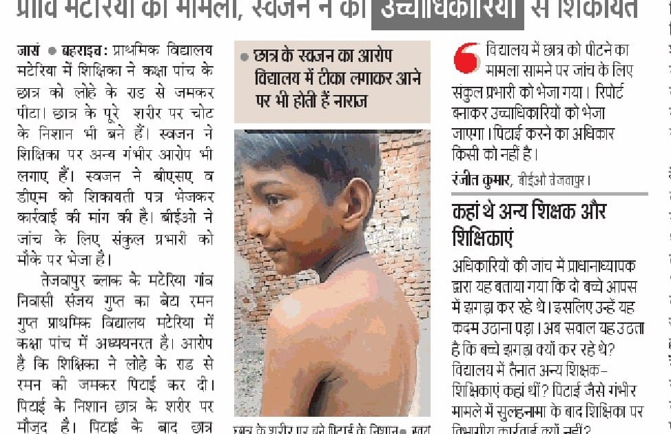 शिक्षिका ने छात्र को लोहे के राड से पीटा, शरीर पर चोट के निशान – UpdateMarts| PRIMARY KA MASTER | SHIKSHAMITRA | Basic Shiksha News
