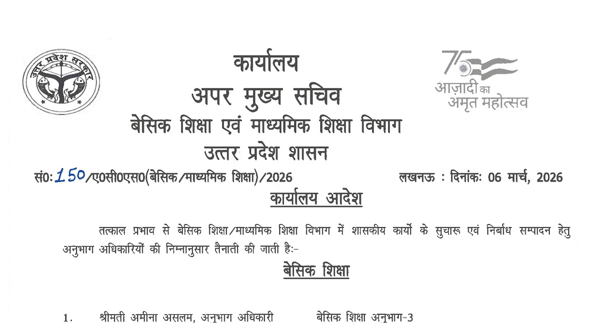 उत्तर प्रदेश शिक्षा विभाग में बड़ा प्रशासनिक बदलाव: बेसिक व माध्यमिक शिक्षा के अनुभाग अधिकारियों की नई तैनाती का ...