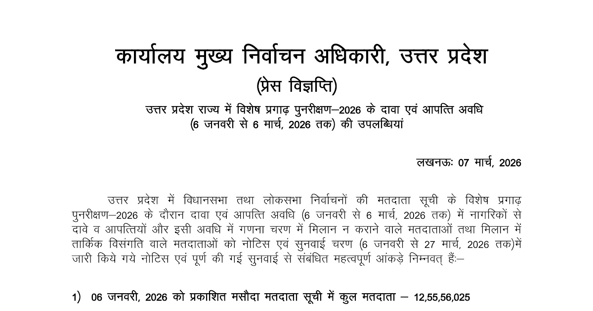 यूपी S.I.R. प्रेस विज्ञप्ति 07 मार्च 2026 – UpdateMarts| PRIMARY KA MASTER | SHIKSHAMITRA | Basic Shiksha News