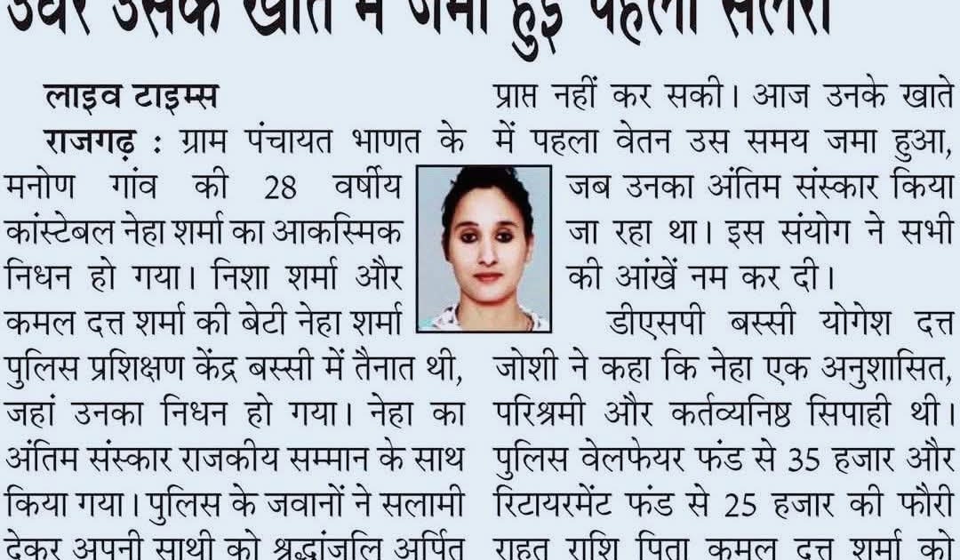 इसे विडंबना कहे या दुर्भाग्य : इधर हो रहा था कांस्टेबल नेहा का अंतिम संस्कार उधर उसके खाते में जमा ...
