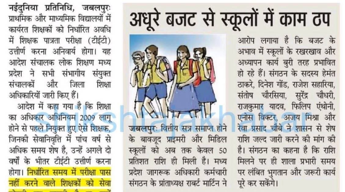 दो साल में पास करना होगी टीईटी परीक्षा, वरना छोड़ना पड़ेगी नौकरी: खबर MP से – UpdateMarts| PRIMARY KA MASTER | SHIKSHAMITRA | Basic Shiksha News
