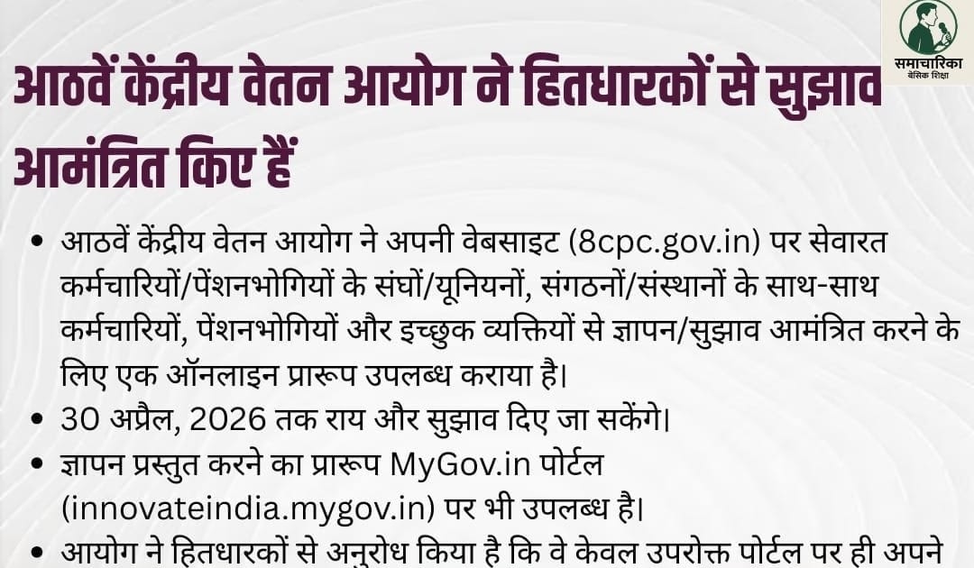 आठवें केंद्रीय वेतन आयोग ने हितधारकों से सुझाव आमंत्रित किए हैं – UpdateMarts| PRIMARY KA MASTER | SHIKSHAMITRA | Basic Shiksha News