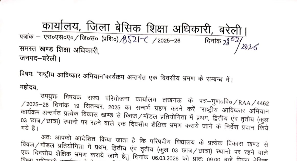 राष्ट्रीय आविष्कार अभियान कार्यक्रम अन्तर्गत एक दिवसीय भ्रमण के सम्बन्ध में। – UpdateMarts| PRIMARY KA MASTER | SHIKSHAMITRA | Basic Shiksha News