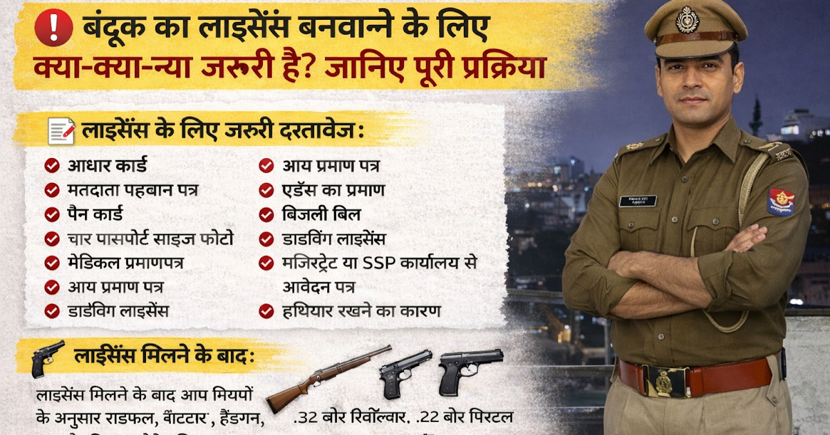 🔴 बंदूक का लाइसेंस बनवाने के लिए क्या-क्या जरूरी है? जानिए पूरी प्रक्रिया अगर आप बंदूक (Gun) का लाइसेंस ...