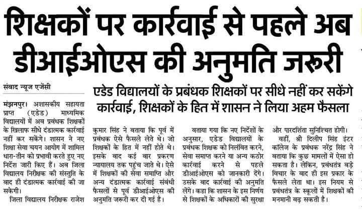 शिक्षकों पर कार्रवाई से पहले DIOS की परमिशन जरूरी