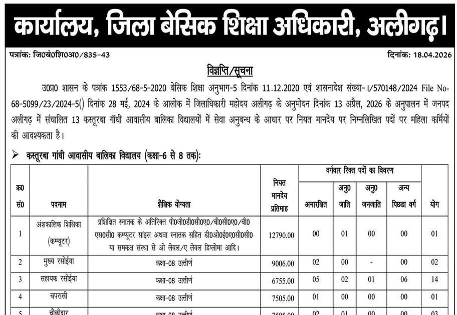 कस्तूरबा गांधी आवासीय विद्यालयों में 29 पदों पर भर्ती का नोटिस जारी – UpdateMarts| PRIMARY KA MASTER | SHIKSHAMITRA | Basic Shiksha News