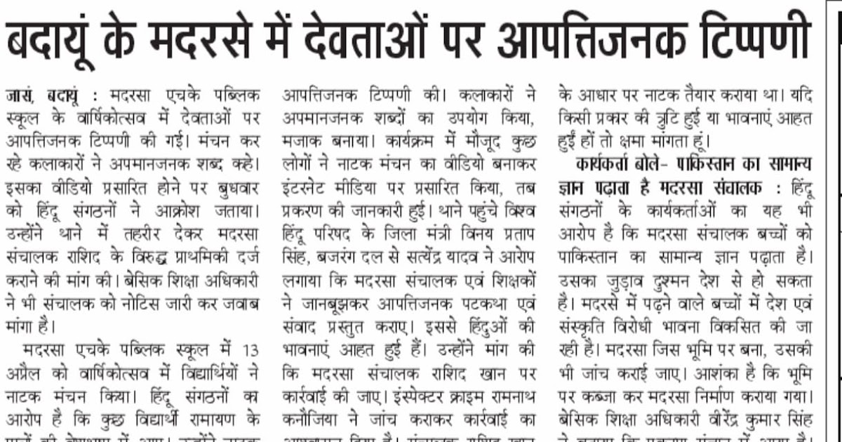मदरसे में देवताओं पर आपत्तिजनक टिप्पणी – UpdateMarts| PRIMARY KA MASTER | SHIKSHAMITRA | Basic Shiksha News