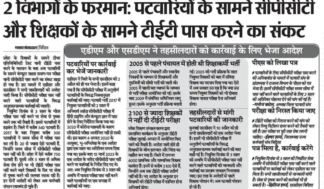 2 विभागों के फरमान: पटवारियों के सामने सीपीसीटी और शिक्षकों के सामने टीईटी पास करने का संकट – UpdateMarts| PRIMARY KA MASTER | SHIKSHAMITRA | Basic Shiksha News