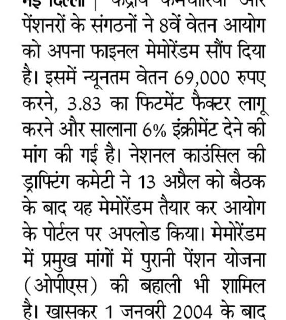 8वें वेतन आयोग को सुझाव : 69,000 न्यूनतम वेतन, 3.83 फिटमेंट फैक्टर, पुरानी पेंशन भी