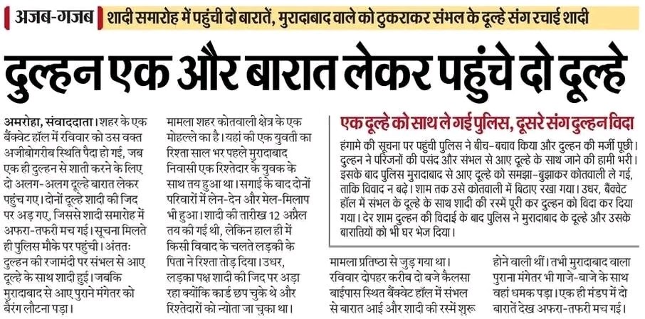 *दुल्हन एक और बारात लेकर पहुंचे दो दूल्हे* *शादी समारोह में पहुंची दो बारातें, मुरादाबाद वाले को ठुकराकर संभल के ...