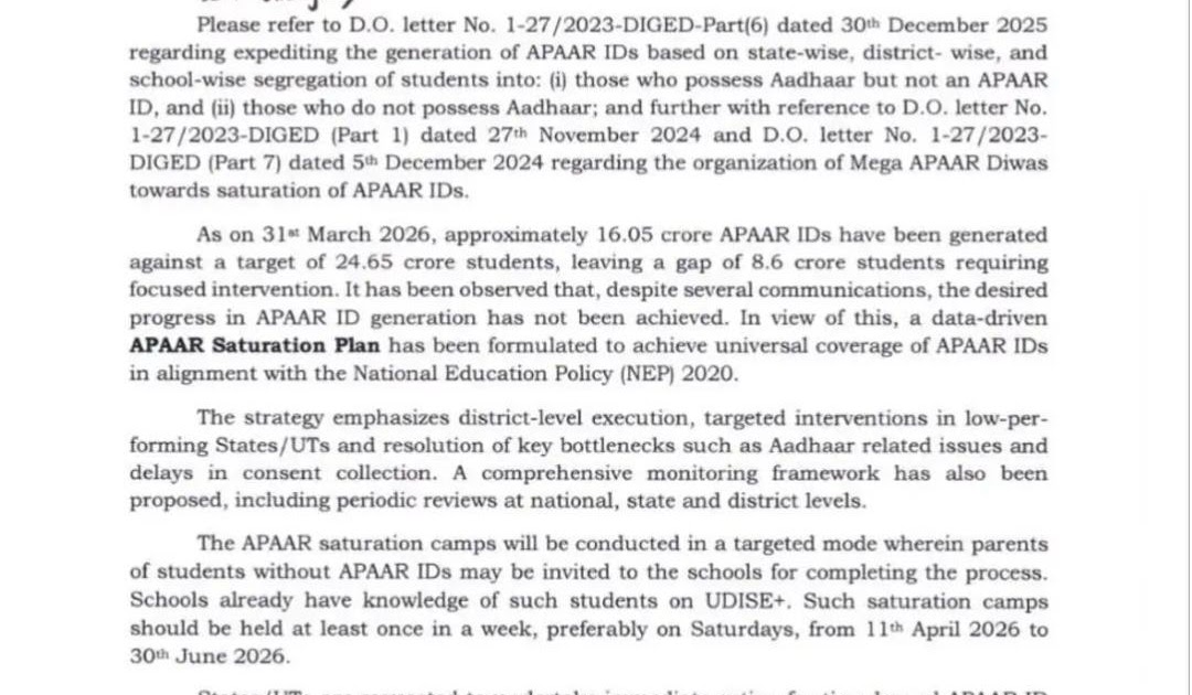 जिन विद्यार्थियों का आधार उपलब्ध है, उनका अपार शीघ्र बनाने का भारत सरकार का निर्देश – UpdateMarts| PRIMARY KA MASTER | SHIKSHAMITRA | Basic Shiksha News