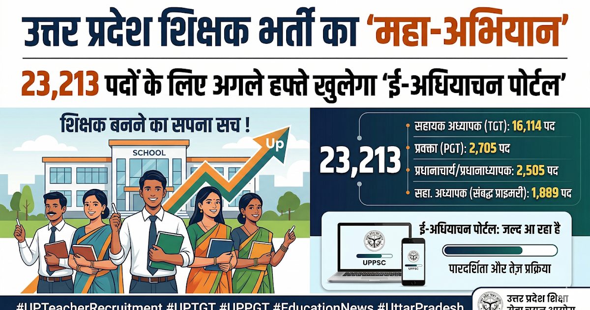 📢 उत्तर प्रदेश शिक्षक भर्ती को लेकर बड़ी खबर! 🚀 ई-अधियाचन पोर्टल अगले सप्ताह से हो सकता है लाइव ...