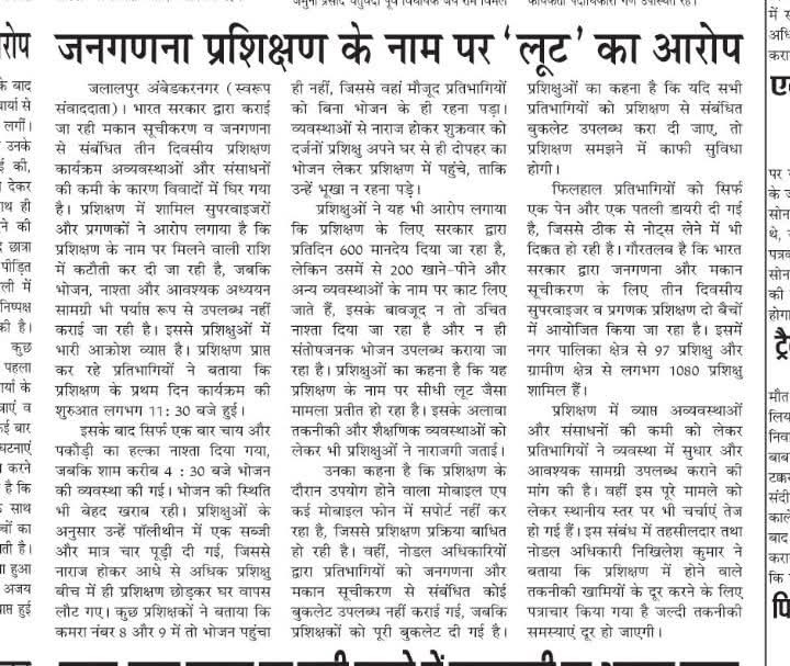📰 जनगणना प्रशिक्षण में अव्यवस्थाओं पर उठे सवाल, ‘लूट’ जैसे हालात के आरोप जलालपुर (अंबेडकरनगर)। भारत सरकार द्वारा कराए ...