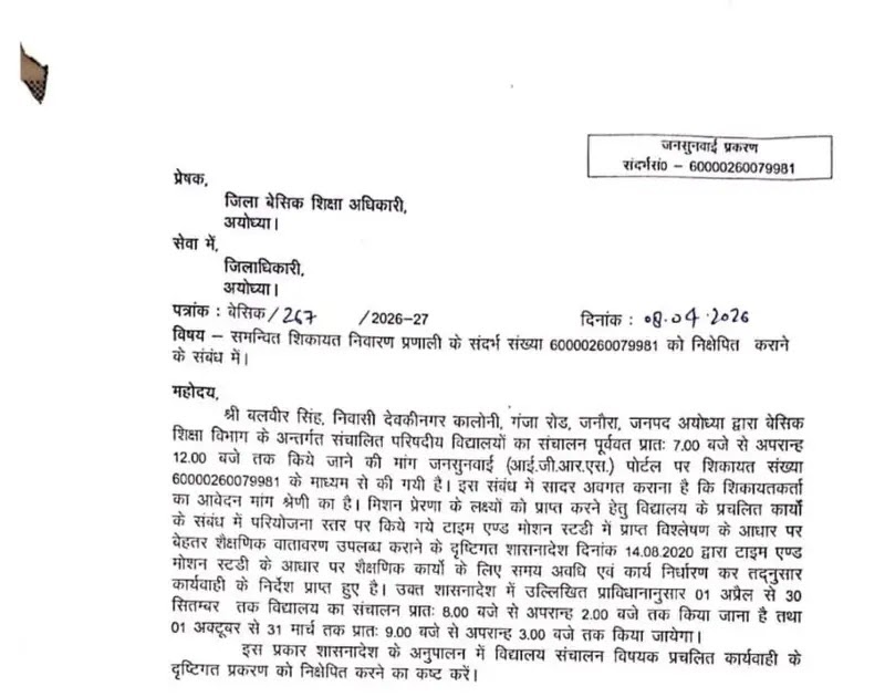 विद्यालय समय परिवर्तन को लेकर आदेश जारी, शिकायत का निस्तारण करने के निर्देश – UpdateMarts| PRIMARY KA MASTER | SHIKSHAMITRA | Basic Shiksha News