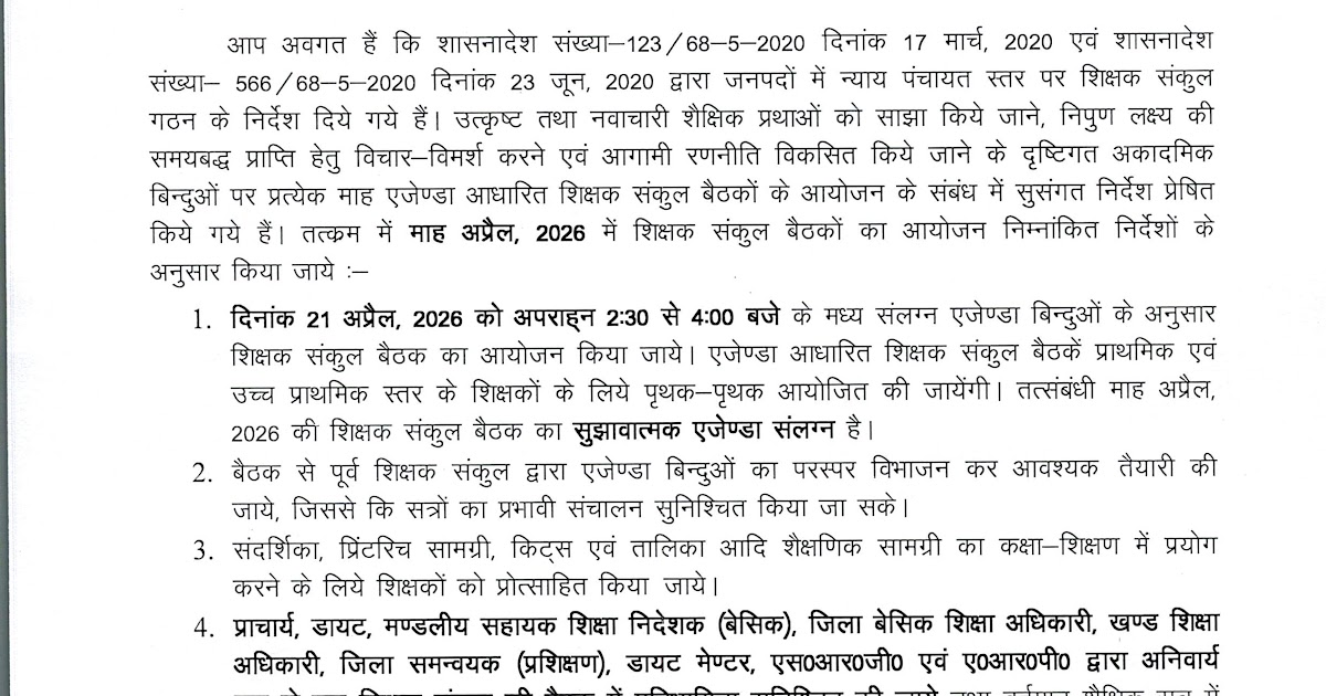 माह अप्रैल, 2026 में शिक्षक संकुल बैठक के आयोजन के संबंध में आदेश, बैठक एजेंडा और बैठक समय – UpdateMarts| PRIMARY KA MASTER | SHIKSHAMITRA | Basic Shiksha News