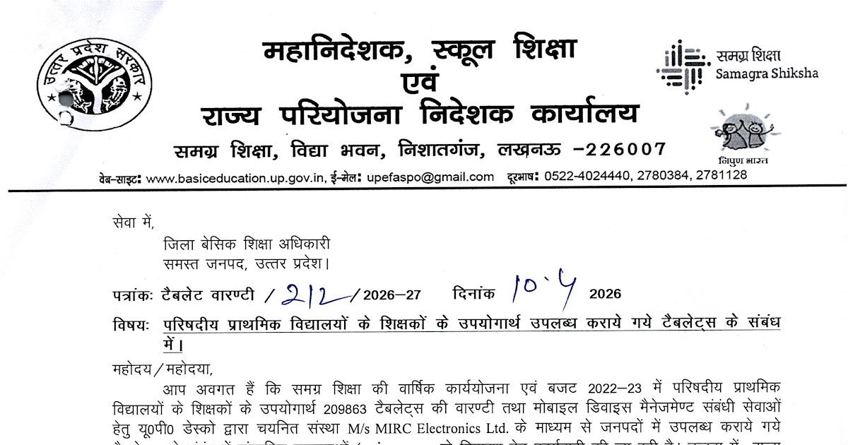 परिषदीय प्राथमिक विद्यालयों के शिक्षकों के उपयोगार्थ उपलब्ध कराये गये टैबलेट्स के संबंध में। Basic Shiksha Khabar | PRIMARY KA ...