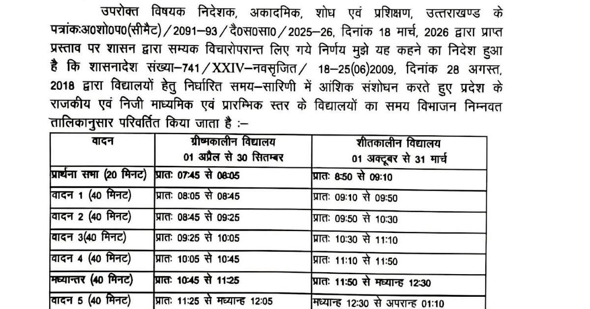 उत्तराखंड में 8 साल बाद स्कूलों का समय बदला…आदेश हुआ जारी #उत्तराखंड #स्कूल #uttarakhand #UttarakhandNews #UttarakhandSchool #UttarakhandSchoolTiming #latestnewsupdate #LatestNews #BreakingNews ...