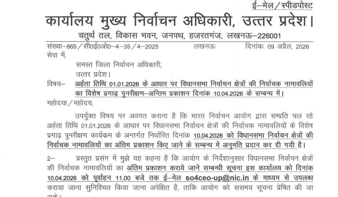 महत्वपूर्ण निर्देश ‘स्कूल चलो अभियान-2026’ के संबंध में। सं०: 230/ए०सी०एस० (बेसिक/माध्यमिक शिक्षा)/2026 लखनऊः दिनांकः 09 अप्रैल, 2026 समस्त बेसिक शिक्षा ...