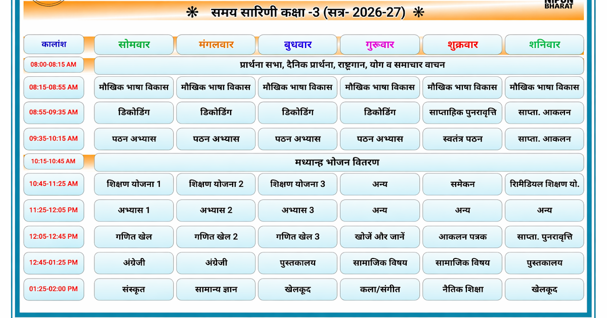 TIME TABLE OF CLASS 3: समय सारिणी कक्षा-3 शैक्षिक सत्र-2026-27 – UpdateMarts| PRIMARY KA MASTER | SHIKSHAMITRA | Basic Shiksha News