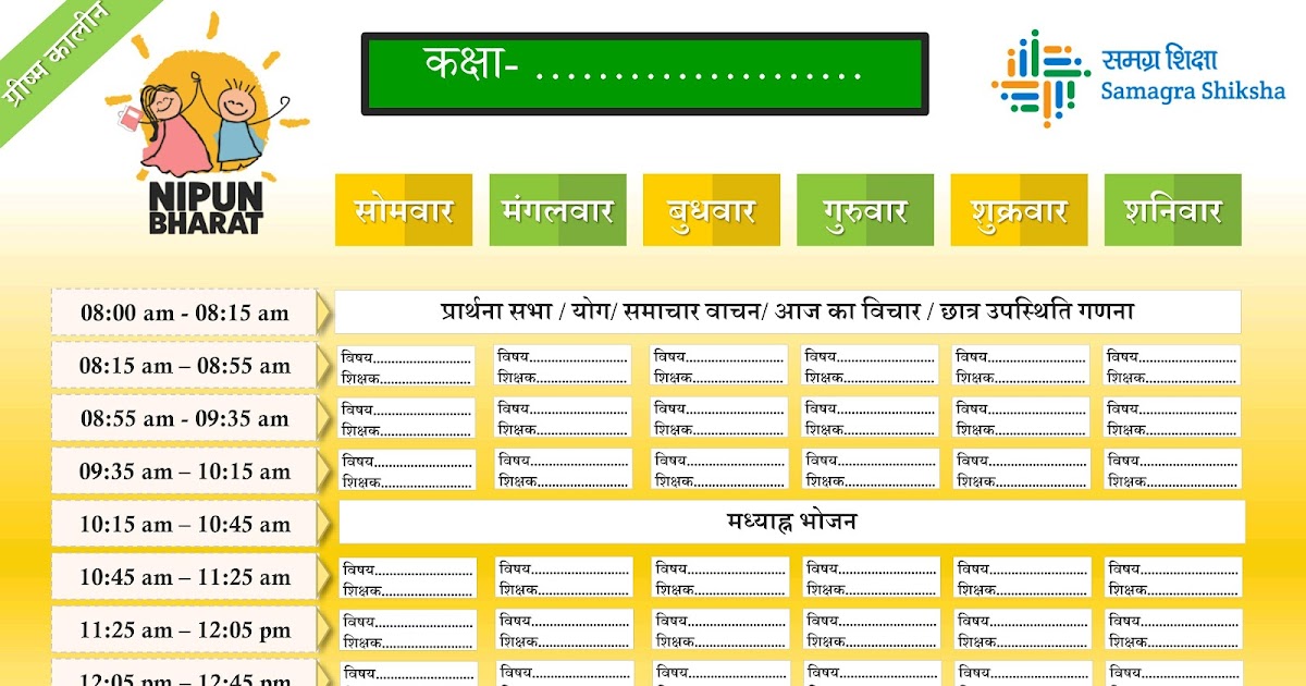 Timetable Format::ग्रीष्मकालीन स्कूल टाइम टेबल फॉर्मेट, देखें – UpdateMarts| PRIMARY KA MASTER | SHIKSHAMITRA | Basic Shiksha News