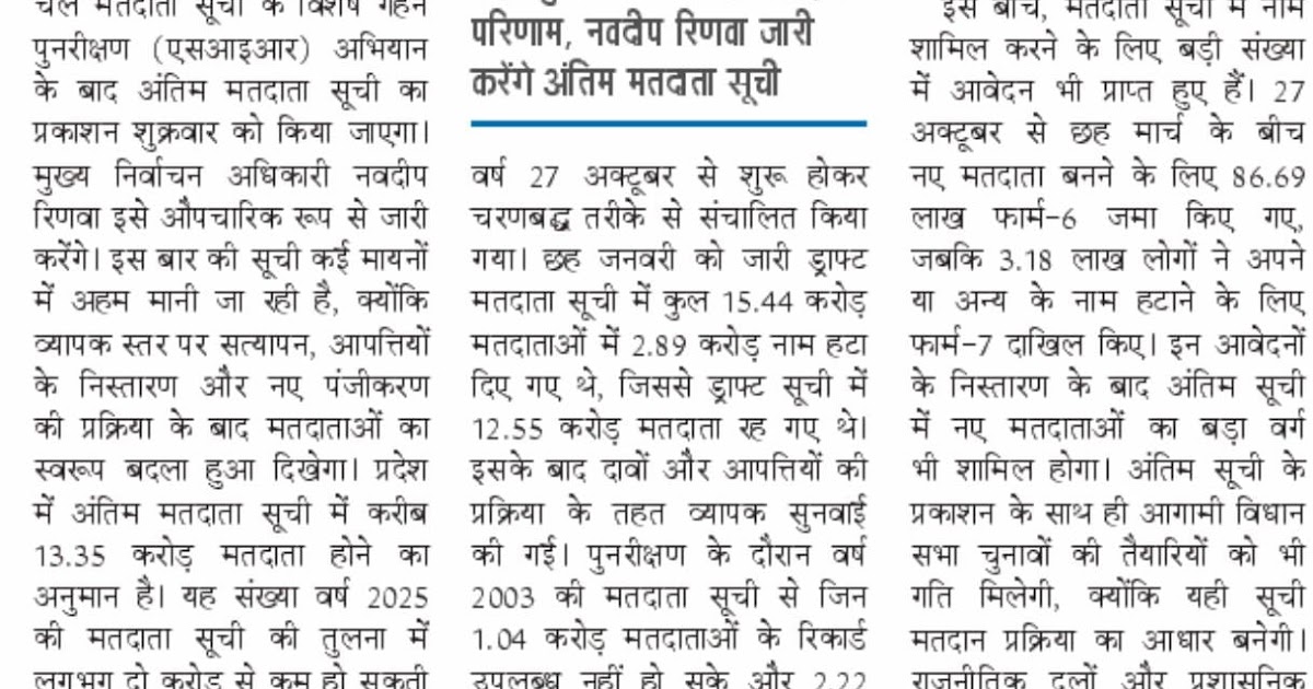 अंतिम मतदाता सूची का प्रकाशन होगा आज – UpdateMarts| PRIMARY KA MASTER | SHIKSHAMITRA | Basic Shiksha News
