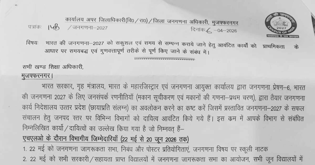 जनणना 2027 के संबंध में : जनपद मुजफ्फरनगर का आदेश जारी – UpdateMarts| PRIMARY KA MASTER | SHIKSHAMITRA | Basic Shiksha News