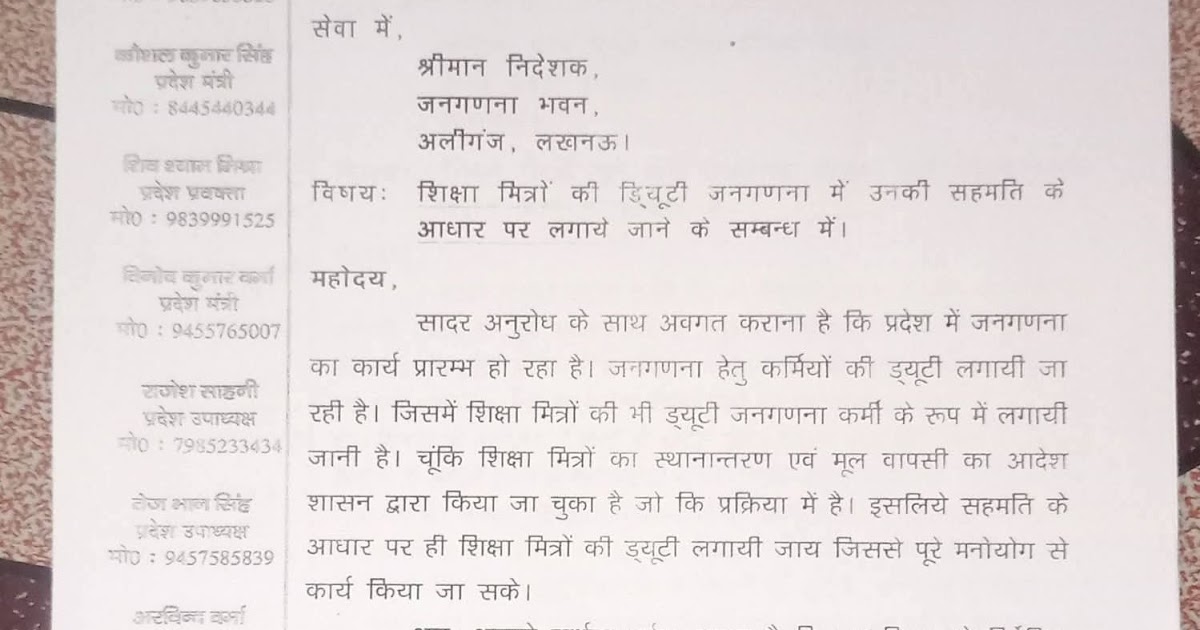 शिक्षामित्र संगठन का प्रयास 🙏 जनगणना कार्य के संबंध में
