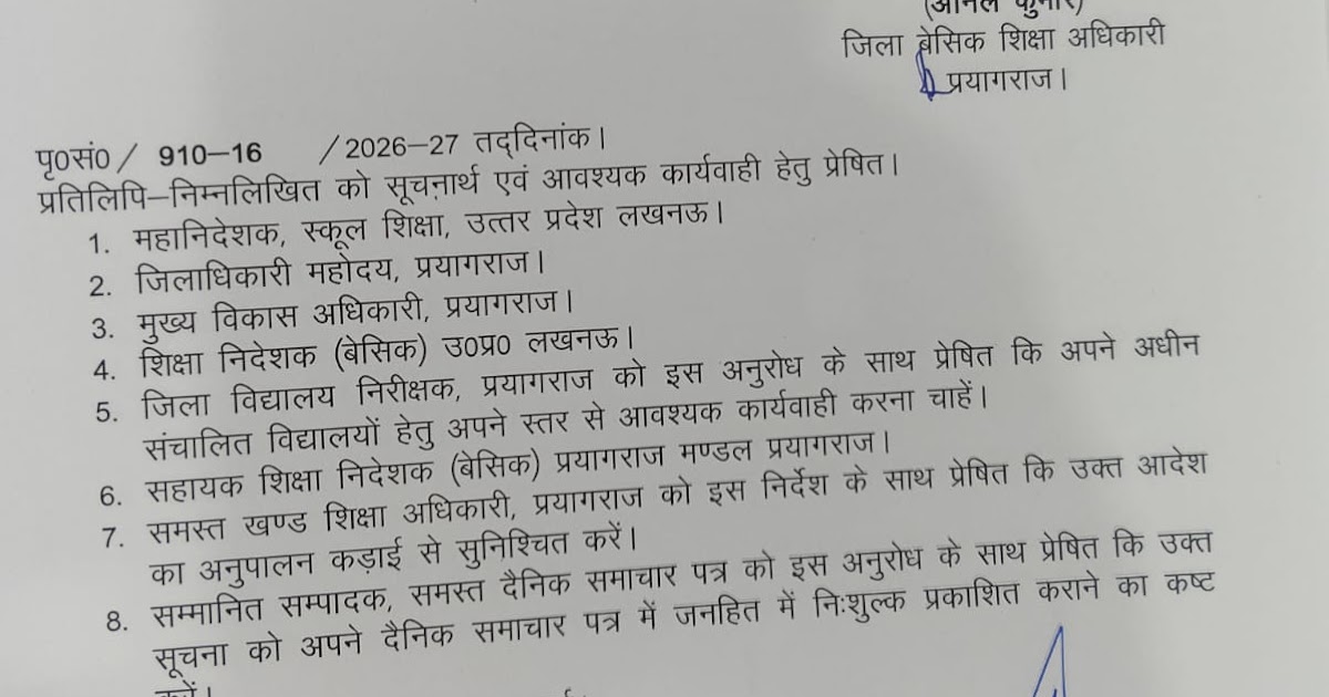 प्रयागराज:भीषण गर्मी और लगातार बढ़ते तापमान को देखते हुए ने महत्वपूर्ण आदेश जारी किया है। 18 अप्रैल 2026 को ...