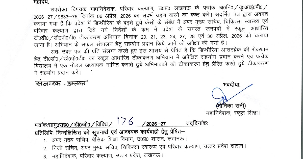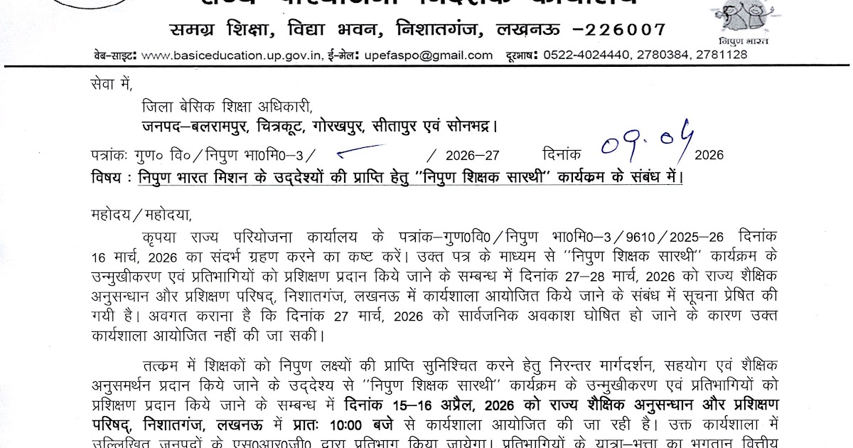 *समस्त कार्यालयाध्यक्ष,* *बेसिक शिक्षा एवं माध्यमिक शिक्षा।* जैसा की आप अवगत हैं कि दिनांक 02-10 अप्रैल 2026 तक मिशन ...
