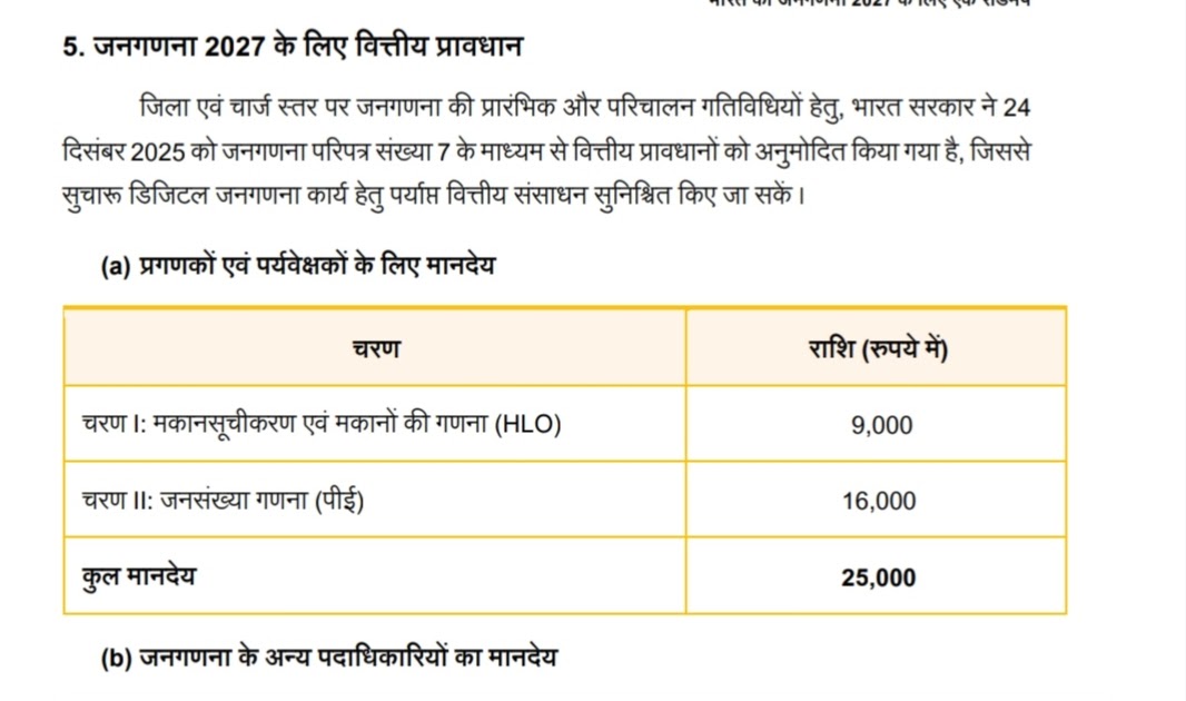 📰 जनगणना 2027 के लिए बड़ा बजट: प्रगणकों को ₹25,000 तक मानदेय नई दिल्ली/लखनऊ। भारत सरकार ने जनगणना 2027 ...