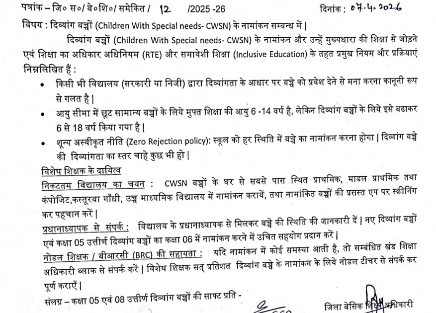 दिव्यांग बच्चों (Children With Special Needs – CWSN) के नामांकन सम्बन्ध में। – UpdateMarts| PRIMARY KA MASTER | SHIKSHAMITRA | Basic Shiksha News