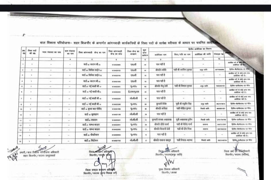 यूपी के जनपद बिजनौर में आंगनबाडी कार्यकत्रियों के रिक्त पदों पर चयनित अभ्यर्थियों की परियोजना वार सूची जारी।✅ Basic ...