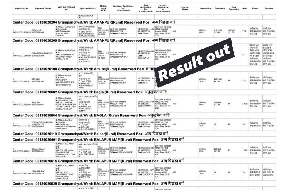 #यूपी के जिला #चित्रकूट की #आंगनबाड़ी सहायिका/कार्यकत्री/ Workers का Final Result हुआ जारी। – UpdateMarts| PRIMARY KA MASTER | SHIKSHAMITRA | Basic Shiksha News