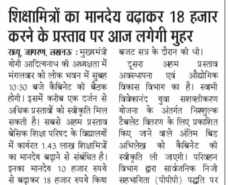 शिक्षामित्रों का मानदेय बढ़ाकर 18 हजार करने के प्रस्ताव पर आज लगेगी मुहर राज्य ब्यूरो, लखनऊ : मुख्यमंत्री योगी ...