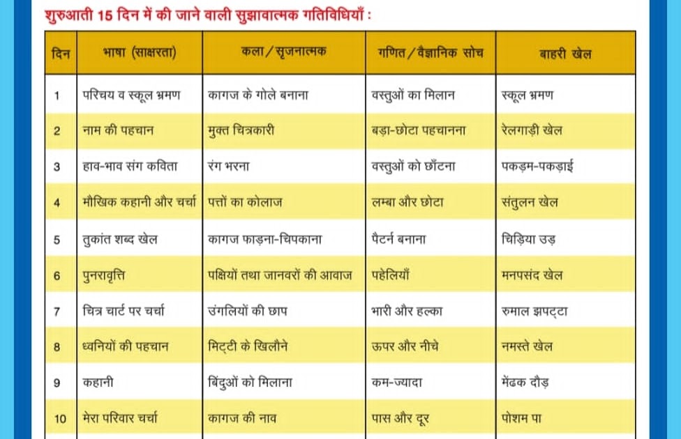 कक्षा एक में पहले 15 कार्य दिवसों में की जाने वाली गतिविधियां ‘विद्या प्रवेश’: अब खेल-खेल में पढ़ाई शुरू करेंगे ...