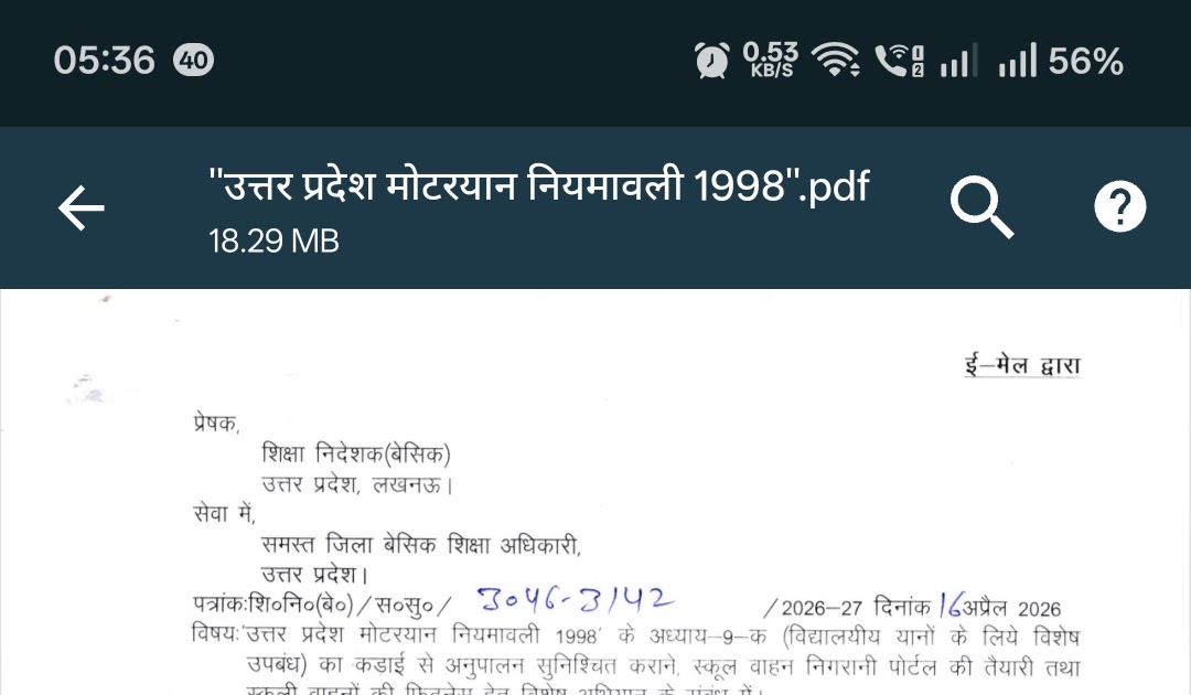 उत्तर प्रदेश मोटरयान नियमावली 1998 के अध्याय 9 क (विद्यालयीय यानों के लिये विशेष उपबंध) का कड़ाई से अनुपालन सुनिश्चित कराने, स्कूल वाहन निगरानी पोर्टल की तैयारी तथा स्कूली वाहनों की फिटनेस हेतु विशेष अभियान के संबंध में। – UpdateMarts| PRIMARY KA MASTER | SHIKSHAMITRA | Basic Shiksha News