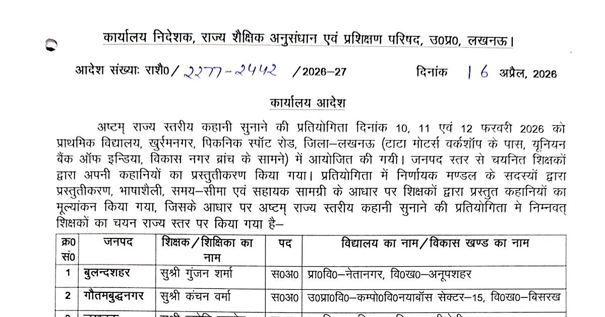 राज्य स्तरीय कहानी सुनाने की प्रतियोगिता में 23 शिक्षकों का चयन, SCERT ने जारी किया आदेश – UpdateMarts| PRIMARY KA MASTER | SHIKSHAMITRA | Basic Shiksha News