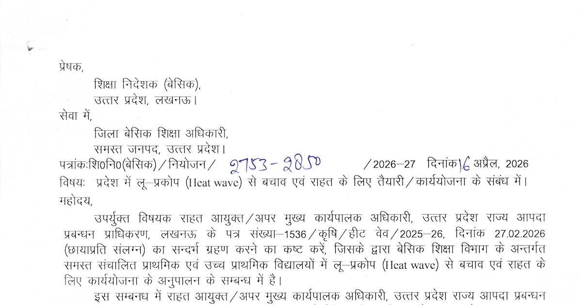 आदेश : प्रदेश में लू-प्रकोप (Heat wave) से बचाव एवं राहत के लिए तैयारी / कार्ययोजना के संबंध में। – UpdateMarts| PRIMARY KA MASTER | SHIKSHAMITRA | Basic Shiksha News
