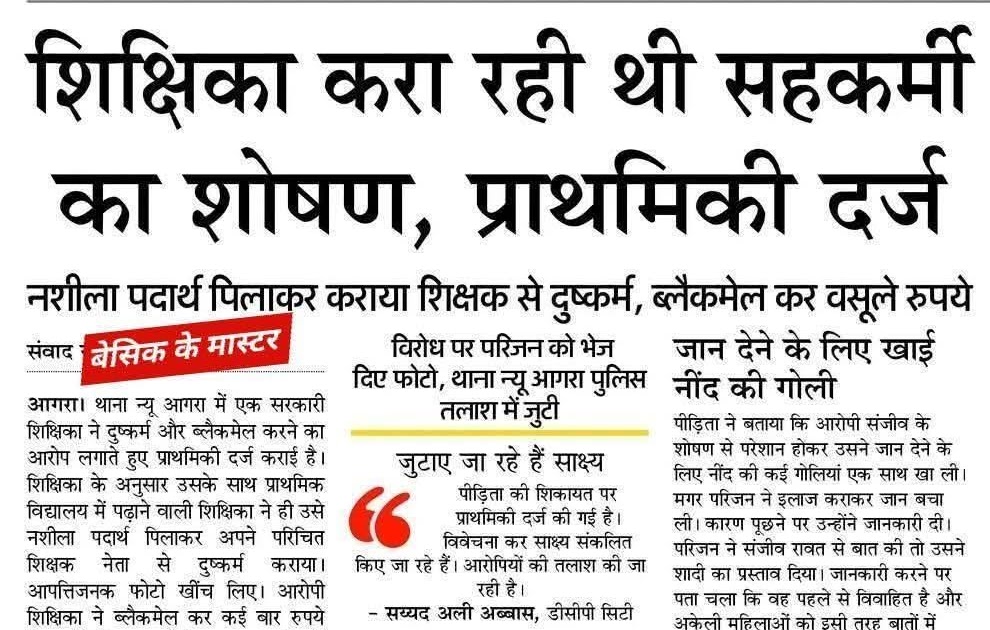 शिक्षिका करा रही थी सहकर्मी का शोषण, प्राथमिकी दर्ज नशीला पदार्थ पिलाकर कराया शिक्षक से दुष्कर्म Basic Shiksha Khabar ...